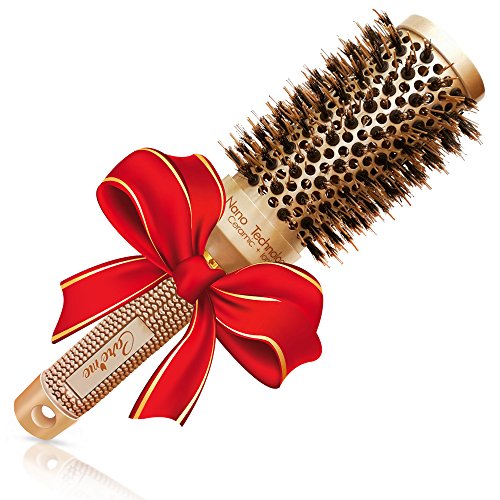 Best Blow Dry Round Hair Brush with Natural Boar Bristles for Blowout - Professional Salon Styling Brush for Healthy Shiny Frizz-Free Hair (1.7 inch)