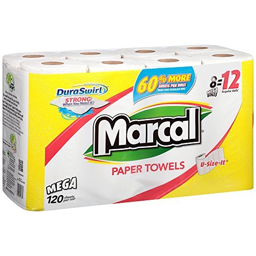 ReleaseDate : 2017-08-05 Studio : Soundview Paper Company Publisher : Soundview Paper Company Binding : Misc. Product Description Marcal 8 Mega Roll U-Size-It Paper Towels are strong, absorbent and a great value for any busy home. U-Size-It sheets save on waste and provide the best solutions for messy clean ups. Made in the USA. Marcal makes paper from paper, not from trees. 0