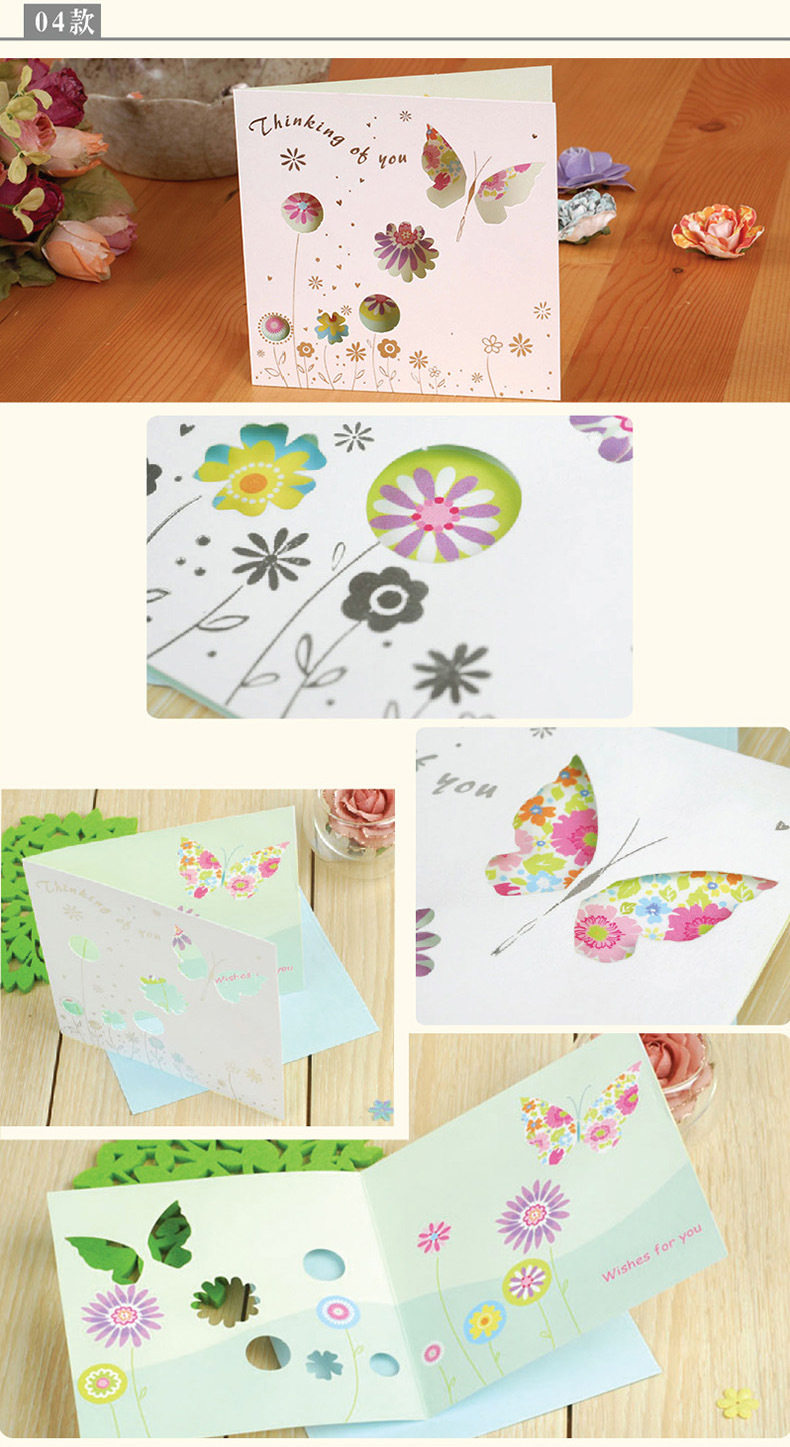 品名:精美镂空贺卡 花草蝴蝶生日祝福卡片