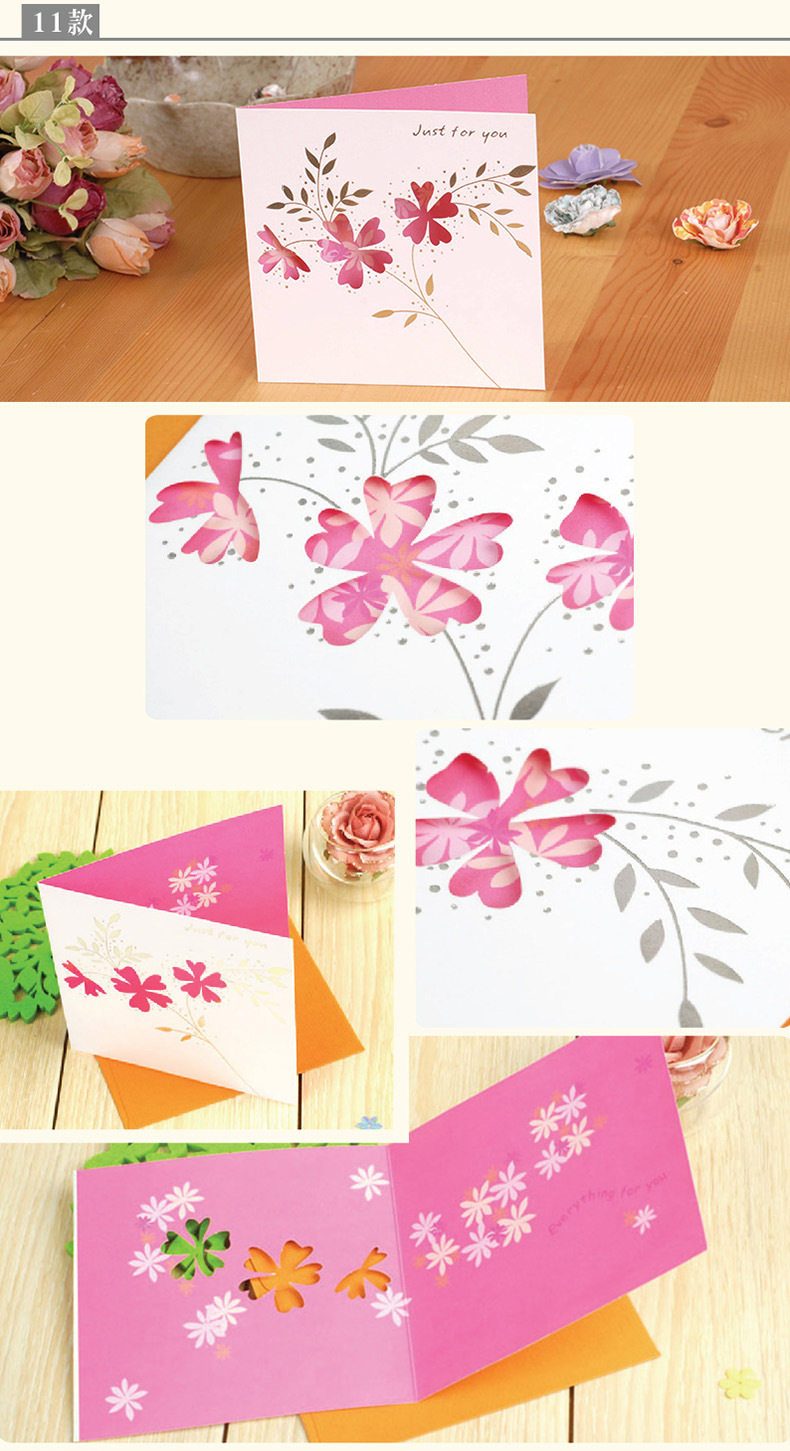 韩国创意镂空新年贺卡花草蝴蝶生日祝福卡圣诞贺卡感谢卡节日卡片