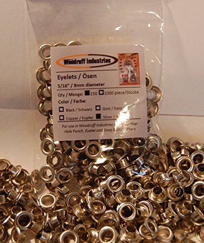 Woodruff Industries - 150 Pieces 5/16 Inch SILVER Metal Eyelets for Scrapbooking, Arts, Crafts, Shoes, Clothes
