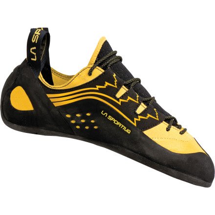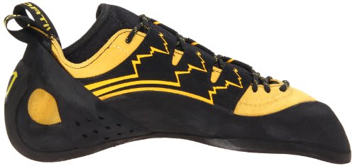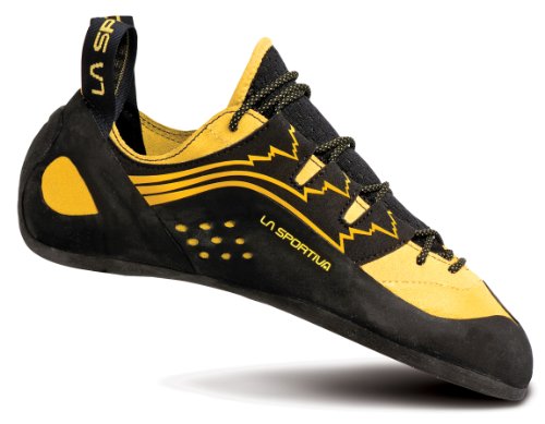 Studio : La Sportiva Publisher : La Sportiva Binding : Apparel Product Description La Sportiva has created a lace-up version of the iconic Katana; the ideal shoe for every type of climbing. The addition of P3 Power Platform technology to one of La Sportiva's most successful climbing shoes produces a veritable edging machine! Maintains its downturned shape through the life of the shoe. This is the first tubular construction climbing shoe, with the lining inserted between the leather uppers and the rubber rand: a solution that gives you the structure performance of a lined shoe with the comfort, breathability, and sensitivity of an unlined shoe. The lacing system allows for optimal regulation of the internal volume, providing a precise fit. Coupled with the new Vibram XS Edge compound, this powerful, slightly asymmetric, down-turned all terrain shoe excels in every climbing scenario. These advanced climbing shoes for both men and women are ideal for overhanging sport routes, bouldering, gym climbing and technical face climbing. 0