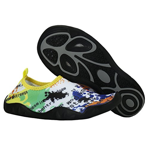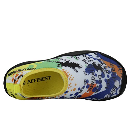 Binding : Apparel Product Description Size Table: US8 (Toddler) ===foot length 170mm/ 6.69in===EU25 US8.5 (Toddler) ===foot length 170mm/ 6.69in===EU26 US9 (Toddler)===foot length 180mm/ 7.08in===EU27 US9.5 (Little Kid) ===foot length 180mm/ 7.08in===EU28 US10.5 (Little Kid) ===foot length 190mm/ 7.48in===EU29 US11 (Little Kid) ===foot length 190mm/ 7.48in===EU30 US12(Little Kid) ===foot length 200mm/ 7.87in===EU31 US13(Little Kid)===foot length 210mm/ 8.26in===EU32 US13.5(Little Kid) ===foot length 210mm/ 8.26in===EU33 US1(Little Kid) ===foot length 220mm/ 8.66in===EU34 US2.5 (Big kid)===foot length 230mm/ 9.05in===EU35 US3 (Big kid)===foot length 230mm/ 9.05in===EU36 US4 (Big kid)===foot length 240mm/ 9.45in===EU37 US5 (Big kid)===foot length 250mm/ 9.84in===EU38 US5.5 (Big kid)===foot length 250mm/ 9.84in===EU39 These water shoes are the brand of AFFINEST. The upper of the water shoes are made with high quality polyester which provides a natural,breath and freedom feeling when putting them on and the sole are made with durable rubber which protects your feet from being hurt by sharp objects. The water shoes are suitable for a wide range of activities. Especially perfect for water aerobics exercises outdoor hiking sports running jogging walking beach snorkeling swimming pool weight training boating windsurfing cycling fishing beach lake yoga car-washing and driving. Any question please feel free to contact us 0
