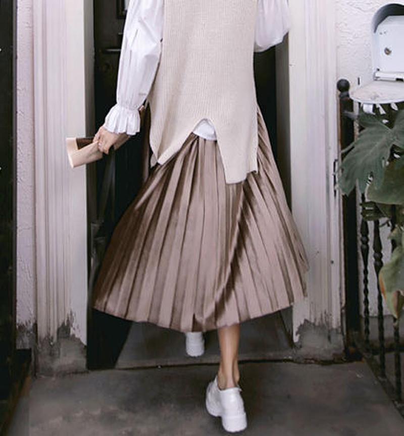 ♢ポイント♢ 様々なコーデに使えるプリーツスカート。 光沢感のあるキレイな色合いが素敵です♪