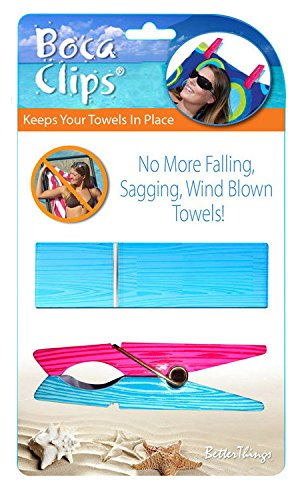 These clothes pin beach towel clips make sure your towels stay firmly in place. No more wind blown towels!