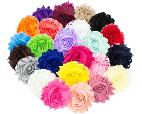 JLIKA (50 pieces) Shabby Flowers - Chiffon Fabric Roses - 2.5" - Solids Color Mix - Single Flowers Grab Bag