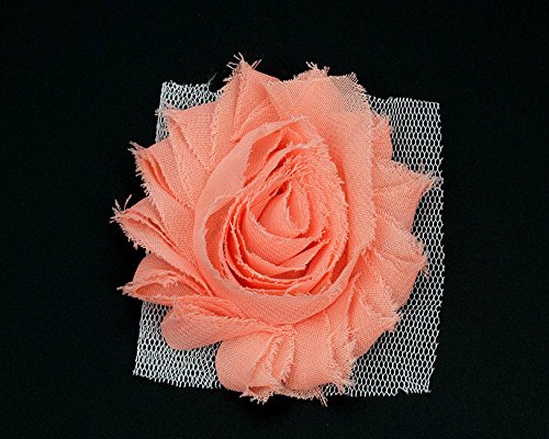 EACH ROSE IS APPROXIMATELY 2.25 to 2.5 inches in diameter. The shabby flowers are attached to a mesh backing with NO CLIPS OR HARDWARE. When you are ready to use your roses, simply trim the mesh around the flower with scissors.