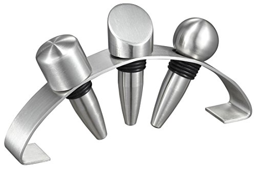 - Wine stopper made with stainless steel with rubberized neck for secure closing; stand made with stainless steel with brushed finish