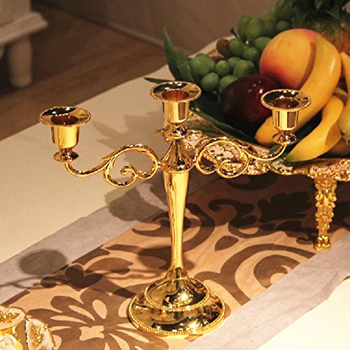 3 Arms Candle Holder, 2 Pcs Metal Gold Silver 3 Branches Candle Stick Stand European Style Candelabra for Dinner Wedding Home Decor (Gold)