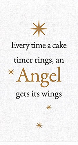 -. Feature : Soft, white cotton kitchen towel with a kitchen blessing to make you smile / Measures 21 x 26-inches; made of 100% cotton / Reads: every time a cake timer rings, an Angel gets its wings; shimmery metallic gold and black design / A great gift for the hostess with the mostess / Look for gratitude Cocktail wine glasses, shot glasses, and tea towels; spirituality with a smile