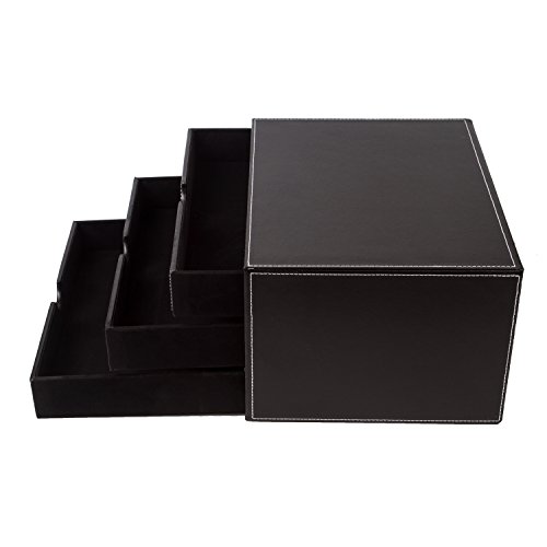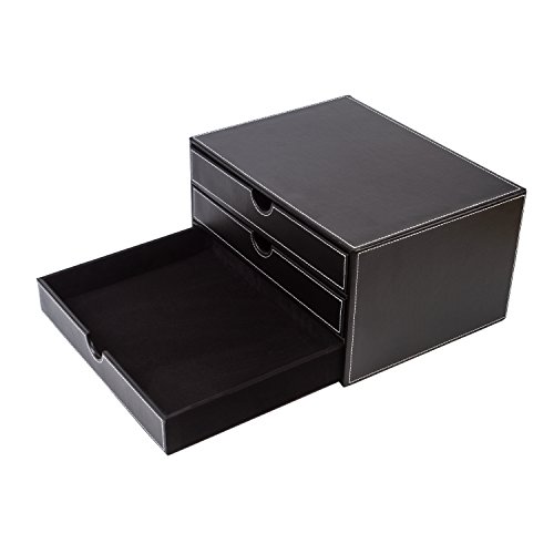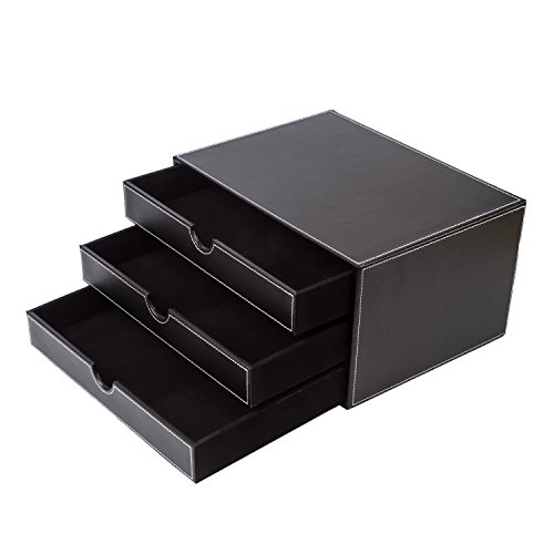 UBaymax Multi-functional 3 Drawer Leather Desk Organizer File Cabinet Office Supplies Desktop Storage Jewelry Organizer Box with Drawer (Black)