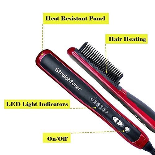 Do you have a perfect hot hot brush hair straightener styler? This electric hot comb is highly recommended for your beauty routine to solve problems like broken hair etc. The 3-in-1 design includes Ceramic Iron Straightener, Detangling Brush, and Anion Hair Massager, which lets your hair not only straight but also smoother and healthier.Safety and Time-saving:The anti-scald technology can not only stop you from burning skin or hands but also maintain temperature when styling your hair.This hair straightening brush straightener heats up quickly so you can get the professional-looking results in few minutes.One comb fits most hair:Heating temperature: 80℃~230℃(176℉~446℉)1. Gear #1 : Soft, thin hair: 130℃/266℉ 2. Gear #2 : Gold hair, bleaching and dyeing or colored hair: 145℃/293℉ 3. Gear #3/4 : Normal or slightly curly hair: 160℃/320℉~175℃/347℉ 4. Gear #5/6 : Thick, curly and wavy hair: 190℃/374℉ ~200℃/392℉What you get:1 × Hair Straightener1 × Operational Manual2 × Hair Clips GiftFeature:Material: ceramicWeight: 1 poundsPackage Size: 13*4*2.5 inchesTips:1. Make sure your hair is dry. Do not use this on damp hair.2. Combed thoroughly before use it and lets your hair inner area of the comb.3. Ensure to detangling your hair and use the heat protectant first before use it.4. If you want to keeps straight hair last longer, please use hair styling lotion and softener lotion and wash clean before hair straightening.5. If your hair is so thick or curly, you should not clip too much hair; if you want to clip more hair, you should be slow down the speed in the process of drawing.Feature