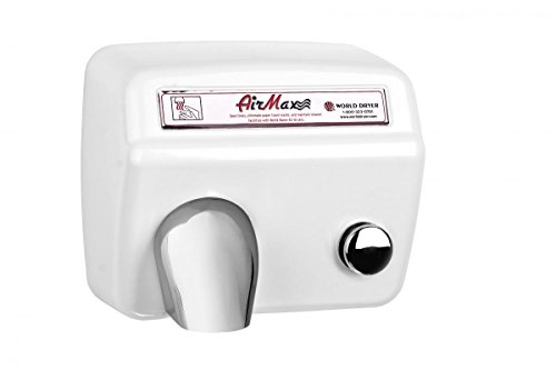 World Dryer M5-974 AirMax High Speed and Heavy Duty Hand Dryers, Push-Button, 110-120V, Cast Iron White