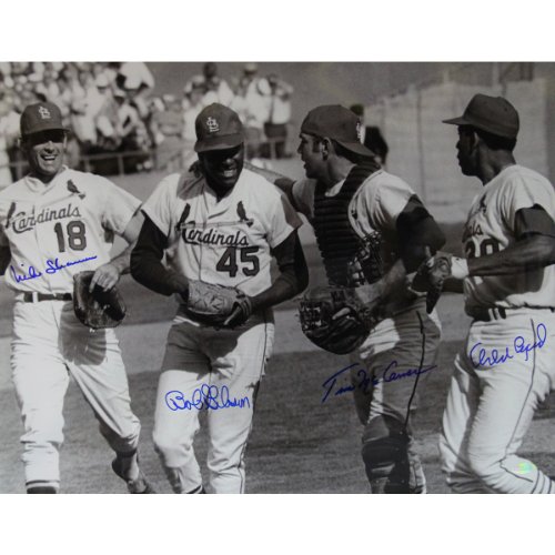 Orlando Cepeda, Mike Shannon, Tim Mccarver and Bob Gibson All Have Autographed This 16 Inch X 20 Inch Photo Of Them Walking Off Of The Field. A Steiner Sports Certificate Of Authenticity Is Included.