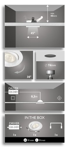 -. Feature : Hochwertiges, warmweißes LED-Licht / Schwenkbarer Spotkopf / Nachhaltige Lichtlösung: Spart bis zu 80% Energie / Lange Lebensdauer von bis zu 15.000 Stunden / Akzentuierter Lichtstrahl