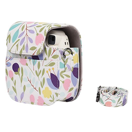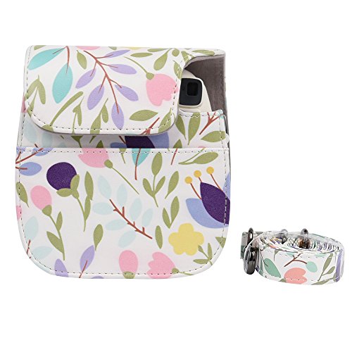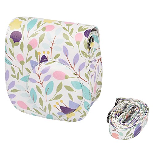 TurnRaise Lovely Leaves Instax Mini 8 Camera Case Bag with Strap for Fujifilm Instax Mini 8/ Mini 8s Camera | PU Leather