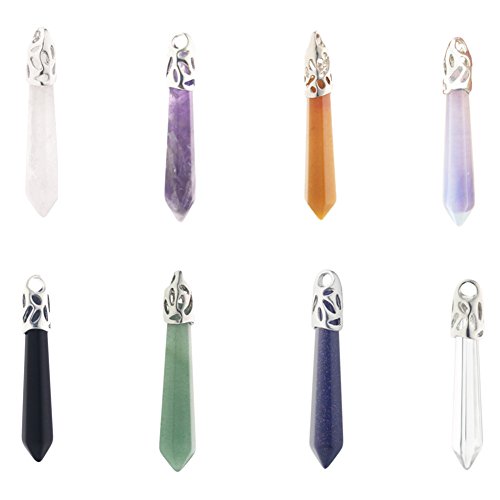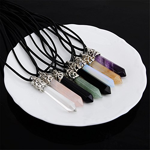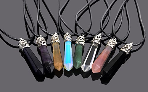 Hexagonal Pile Gemstone Crystal Pendant Necklace, Imitation Leather Cord Necklaces Unisex, Power Healing Chakra Pack of 8