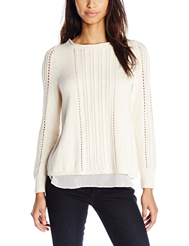 Lucky Brand missy long sleeve pullover sweater with inset woven detail
