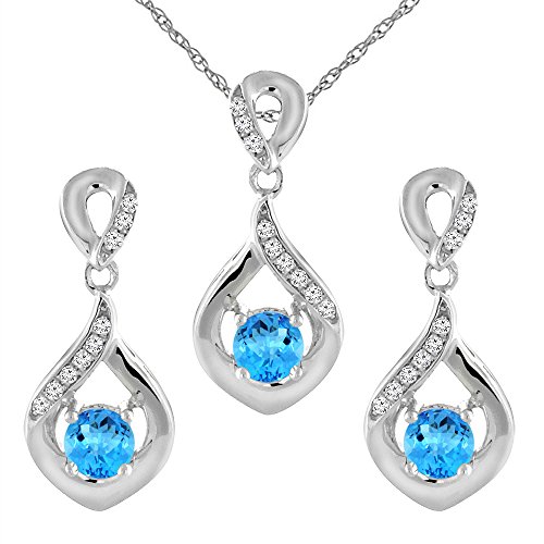 -. Binding : Jewelry -. Brand : Sabrina Silver -. Department : womens -. Feature : 14K Solid Gold / Naturally-vibrant, superior quality color gemstone / High Quality Genuine Diamond Accents / Complimentary gold chain included -. ProductGroup : Jewelry -. ProductTypeName : FASHIONOTHER -. Title : 14K White Gold Natural Swiss Blue Topaz Earrings and Pendant Set with Diamond Accents Round 4 mm
