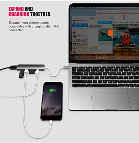 -. Title : USB C Hub, HOGORE USB-C Multi port Adapter 3.1 with Charging Port, 4K HDMI Output, Micro SD Card Reader, 2 USB 3.0 ports for Macbook Pro, Chromebook and more USB C Deveices - Rose Gold