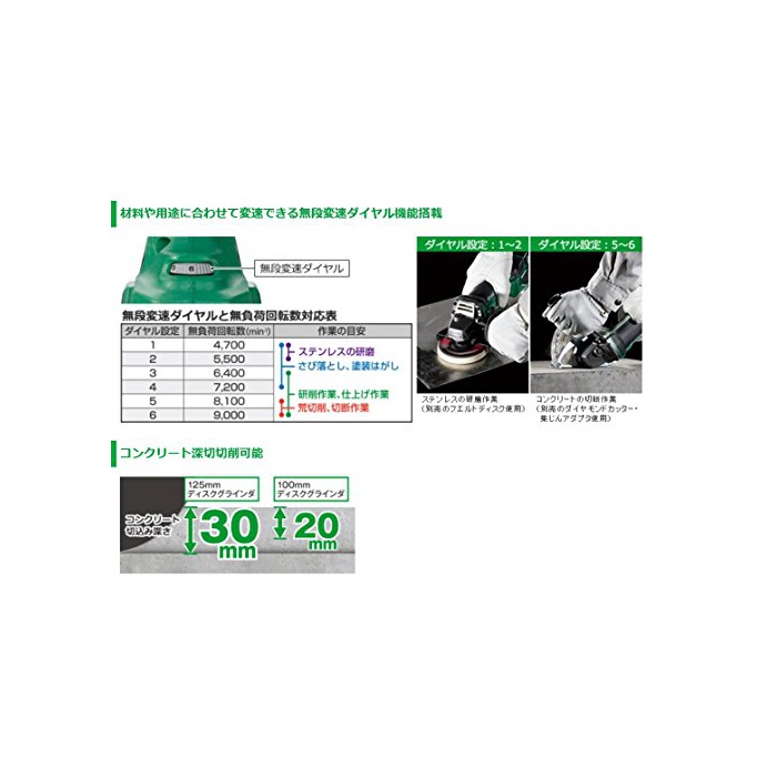 히타찌(HITACHI) 히타찌 공기구 18V 무선 디스크 글라인더 충전식 숫돌φ125mm 축전지 충전기 별매 G18DBVL(NN) 본체 만