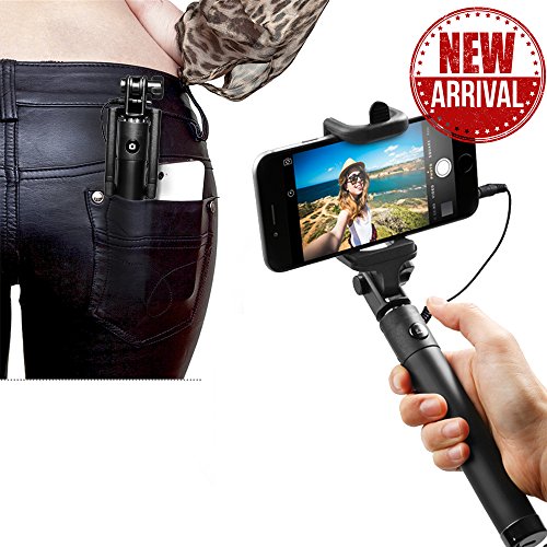 -. Title : Selfie Stick, Foldable, Durable, extandable Handheld Selfie Stick w/ Built-in Remote Shutter Cable For Smartphones