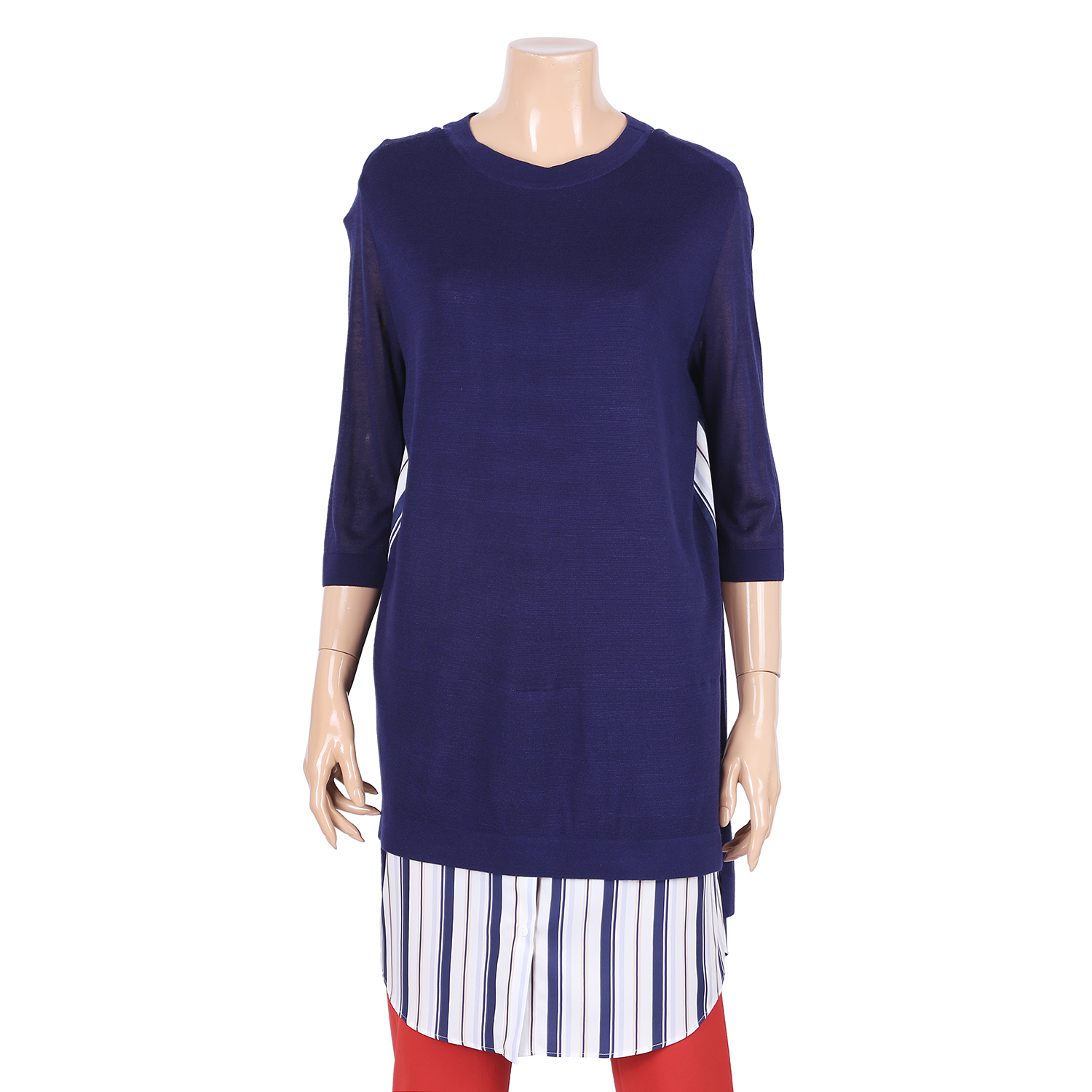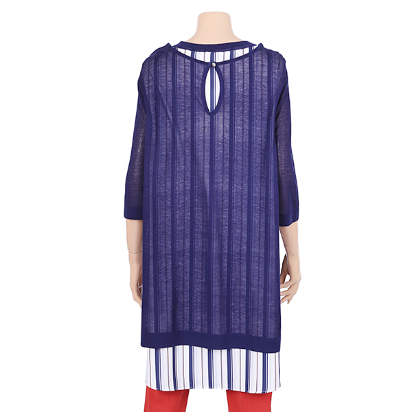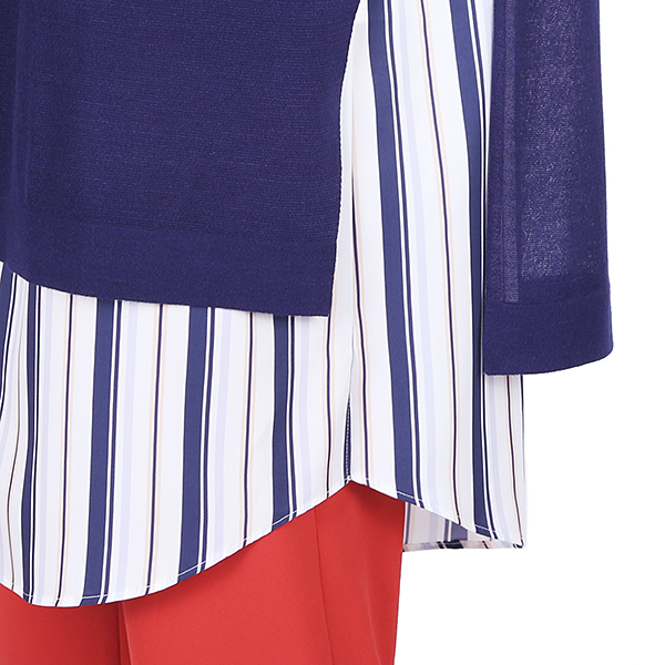 이 제품은 스트라이프 롱셔츠에 라운드니트티셔츠를 겹쳐입은듯앞판은 니트티셔츠의 홉겹으로 고급스럽고 흔하지 않은 스타일의 제품으로