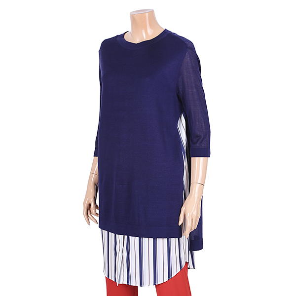 스트라이프롱셔츠배색의세련된니트티셔츠