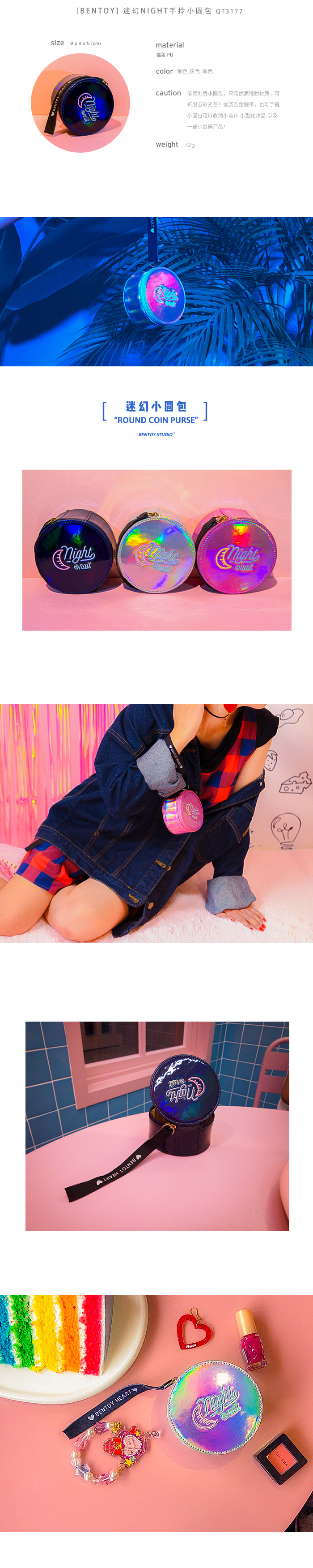 Bentoy催眠刺繍シリンダーバッグレーザー原宿風小丸袋10代ins収納袋