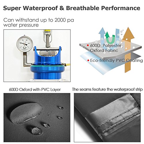 - SUPER WATERPROOF PERFORMANCE: Owing to the superior 600D oxford fabric with waterproof PVC Layer and our special textile process, Anglink grill cover can withstand up to 2000 Pa water pressure (Most competitors only 700-800 Pa). In addition, the seams also add the waterproof strip, which completely resolve the issue of water seepage of other similar products. Your grill will perfectly keep dry even during a wild wind storm.