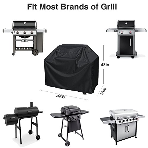 - 100% NO RISK PURCHASE: This grill cover is 58" Length x 24" Width x 48" Height, which fits most famous brands of grill like Weber, Holland, Brinkmann and Char Broil. (In order to get the right size cover, advise you to measure your grill prior! ) --- 18 MONTHS MANUFACTURER'S WARRANTY. We’re so confident about the quality of our products that if you have any product issues, we’re very happy to either provide a Refund or a Replacement and you can keep the cover - can’t say fairer than that!
