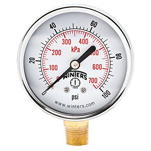 Winters PEM Series Steel Dual Scale Economical All Purpose Pressure Gauge with Brass Internals, 0-100 psi/kpa, 2-1/2" Dial Display, +/-3-2-3% Accuracy, 1/4" NPT Bottom Mount