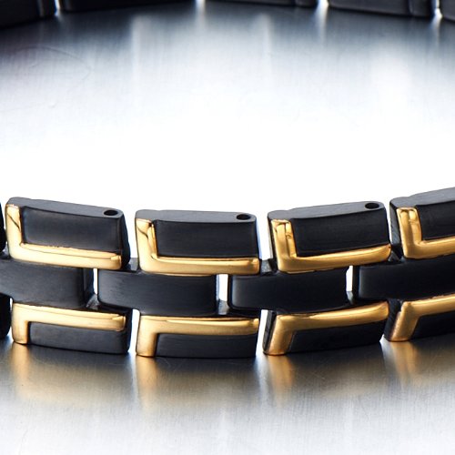 H+C 스테인레스 맨즈 팔찌 - 게르마늄 자석 요법 - 폴리시와 새틴 - 타임 레스 스타일