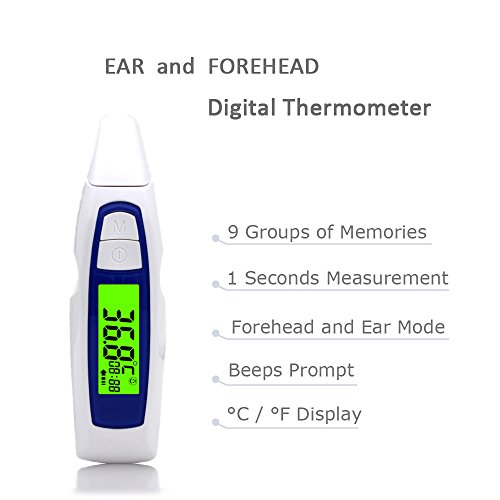 Cocopa Forehead Baby Thermometer, Digital Infrared Non-Contact Forehead and Ear Thermometer for Baby, Toddlers and Adults