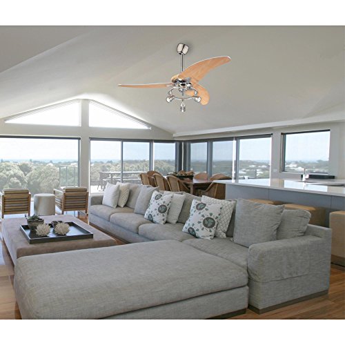 Three-light 48-inch three-blade indoor ceiling fan for rooms up to 144 square feet (12 by 12 feet)
