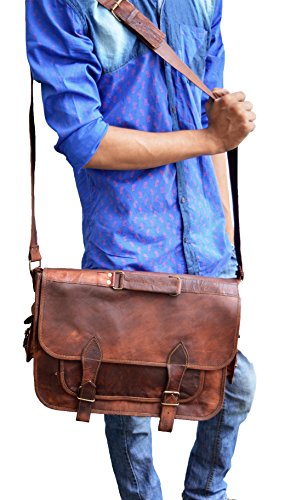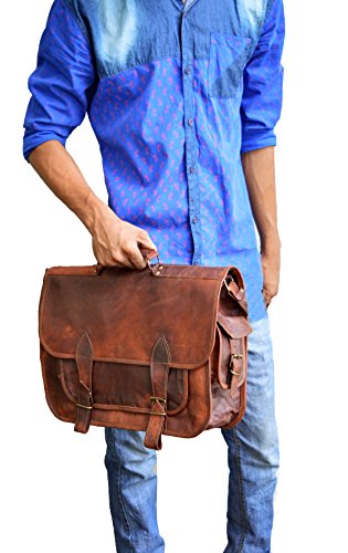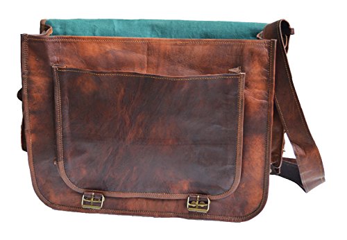-. Feature : Dimensions : 12 X16 X 5 inches (height, width, depth) . Outer Pocket Dimension : 10 X 8 inches (L x W) / 100% light weight goat leather bag. Ideal for 15.6 inch notebooks , small laptops & tablets / Ipads Comes with a padded 14" Sleeve. No nasty chemicals used for tanning, won't cause any allergic disease if in contact with skin. / has brass polished buckles . 100% rustproof. Detachable & Adjustable shoulder strap , for best fitting for people of all sizes. / One external front pocket for keeping misc. things. One small pocket on the each sides .Has a sturdy canvas inner lining for real long life. Handle on top for it can be used as a briefcase. Has three partition inside for easy separation of things. / The leather maybe lighter in color when new, however, with usage it get darker.