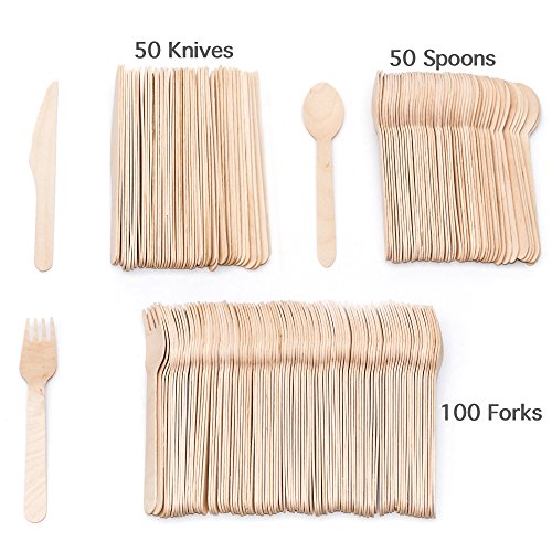 Disposable Wooden Cutlery| Forks, Spoons, Knives| Compostable Utensil Set | 100% Natural and Eco Friendly | Biodegradable| Travel, Camping, Weddings, Parties