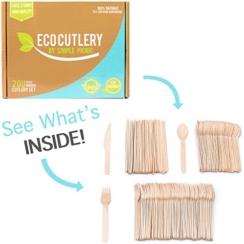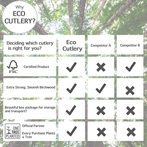 - STRONG, DURABLE- Eco cutlery is made with thick wood and remain firm while eating. A great alternative to plastic cutlery.