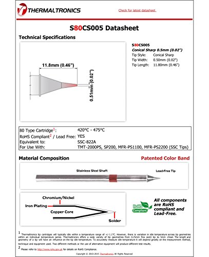 Thermaltronics S80CS005 Conical Sharp 0.5mm (0.02") interchangeable for Metcal SSC-822A