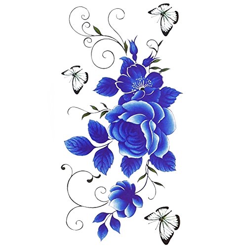 TAFLY Temporary Tattoo Blue Peony Flower Body Art Butterfly Transfer Sticker 5 Sheets