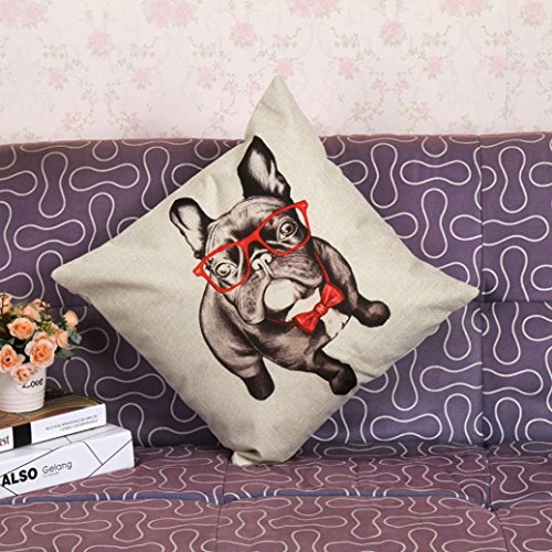 Outtop Christmas Gift [ Collection II ] Linen Blend Pillowcases-Cute Designs Sofa Bed Home Decoration Festival Pillow Cushion Covers, 45cm X 45cm/18" X 18“ (French Bulldog)