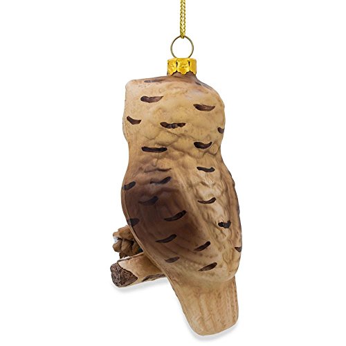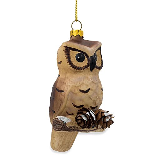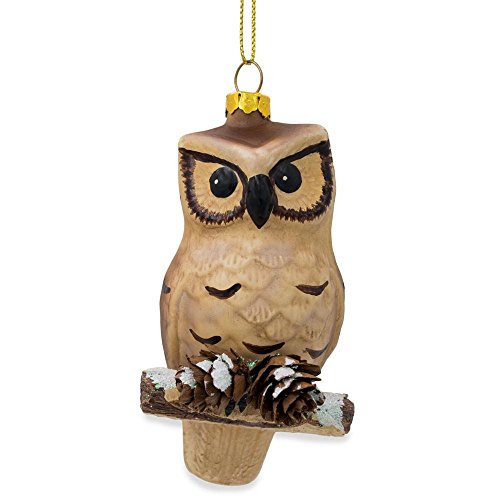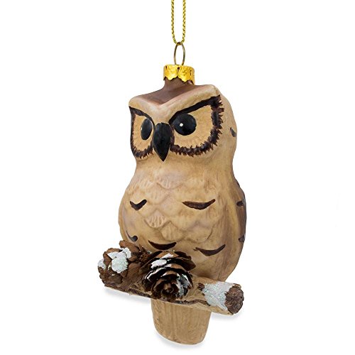 4.25" Owl on Branch with Pine Cones Glass Christmas Ornament