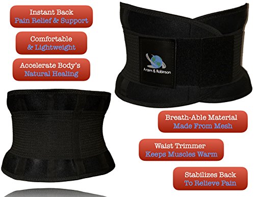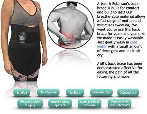 Artem & Robinson Lower Back Brace for Lumbar Support, Pain Relief & Posture Support. Made for MEN/WOMEN with Breathable Mesh & Comfortable Adjustable Tension Straps (Black S-XL)