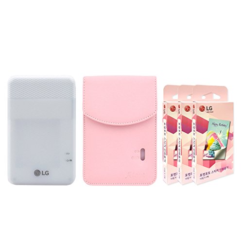 LG PD261 Portable Mobile Pocket Photo Printer [White] + Zink Sticker Paper 90 Sheets + Atout Premium Synthetic Leather Case [Pink] With Gift USB Cable [International Version]