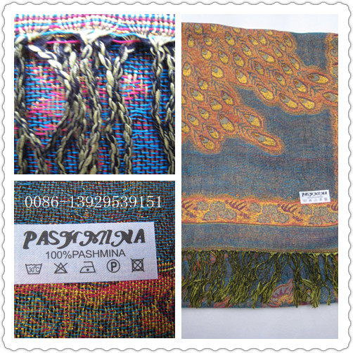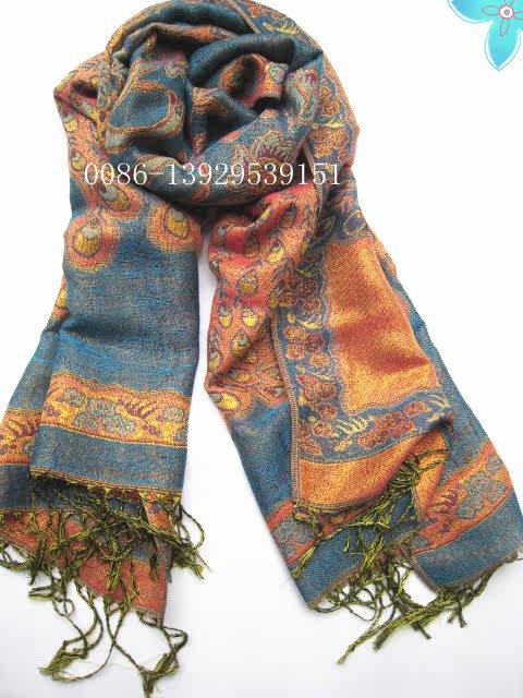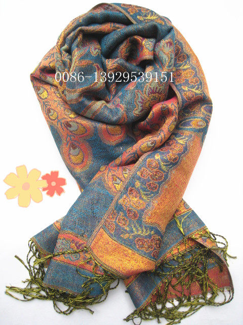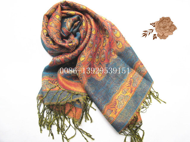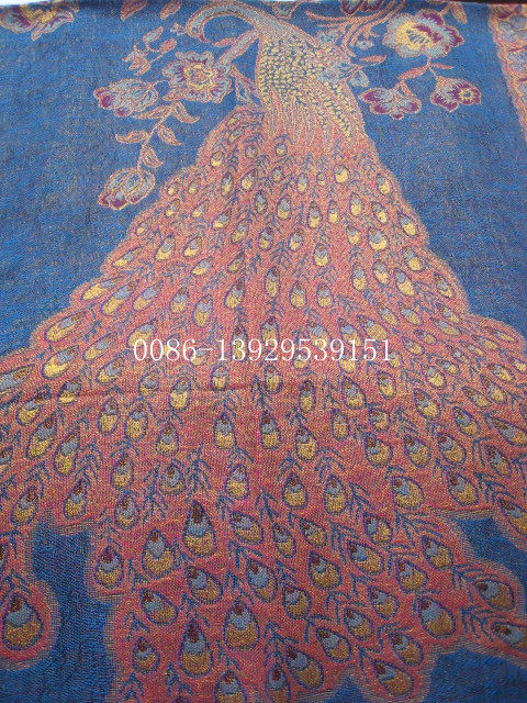 Peacock - Blue fringed Scarf Shawl