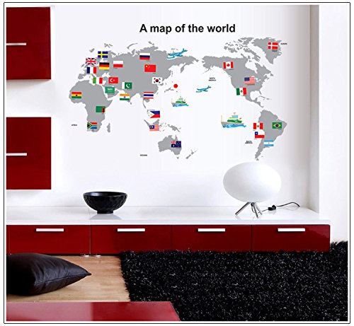 World Map Wall Decal,Maps Wall Decals Roommates Wall Stickers Vinyl Wall Art Decal Sticker
