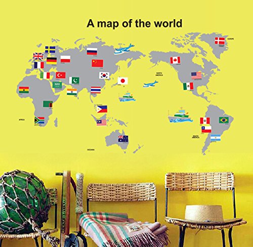 YALLN World Map Wall Decal,Maps Wall Decals Wall Stickers Vinyl Wall Art Decal Sticker,A Map of The World B014M4XSEO
