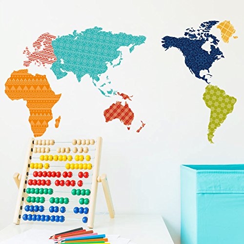 This world map is especially suited to kids, with fun graphics, easy to read tags.Our peel and stick kids world map decal is also dry-erase. Your kids will love learning about the world and making their own notes on this giant map, which is also first-rate for educational classroom decor. WallPops are repositionable and always removable.