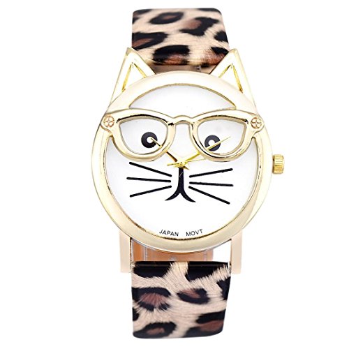 -. Title : Women Watch,SMTSMT Cute Glasses Cat Women Analog Quartz Dial Wrist Watch-Khaki