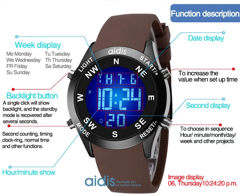 Feature:Water Resistant,Auto Date,Complete Calendar,Back Light